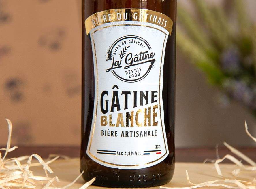 La bière blanche La Gâtine contient les ingrédients suivants : eau, malt d’orge et de blé, avoine, houblon, levure, sucre, miel du gâtinais, coriandre, écorces d’orange.
